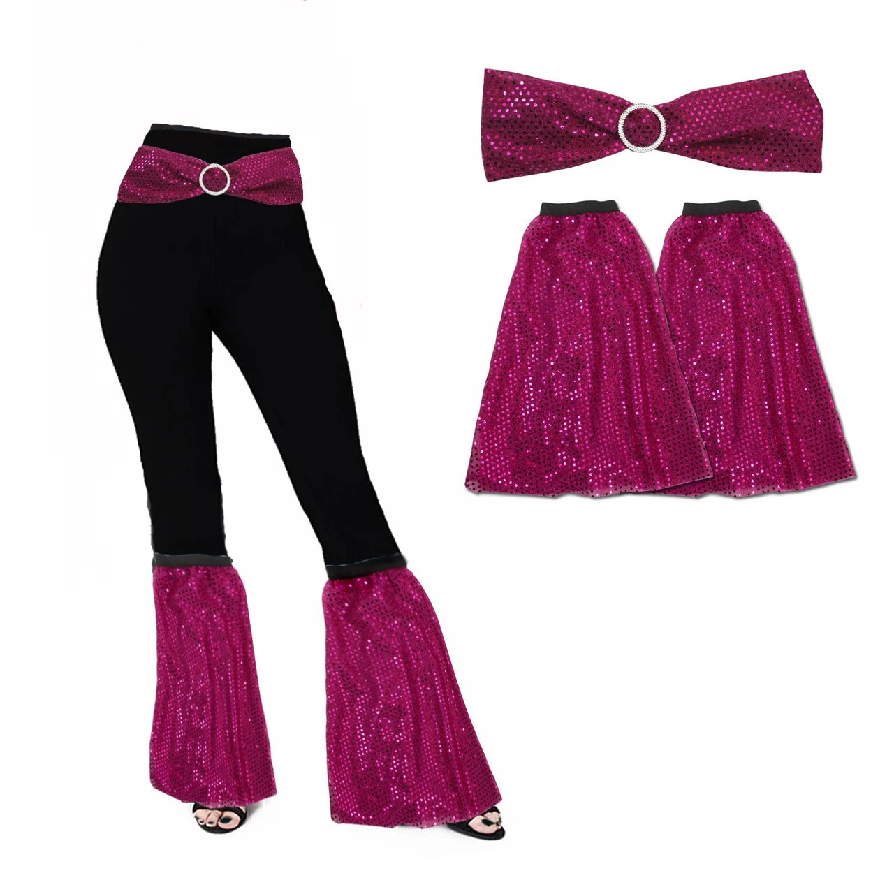 1960s 60’s 1970s 70’s Sequin Flared Boot Covers & Belt Fancy Dress Costume Accessories Kit