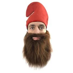 Adults Garden Gnome Faux Fur Cosplay Fancy Dress Beard & Hat Accessory