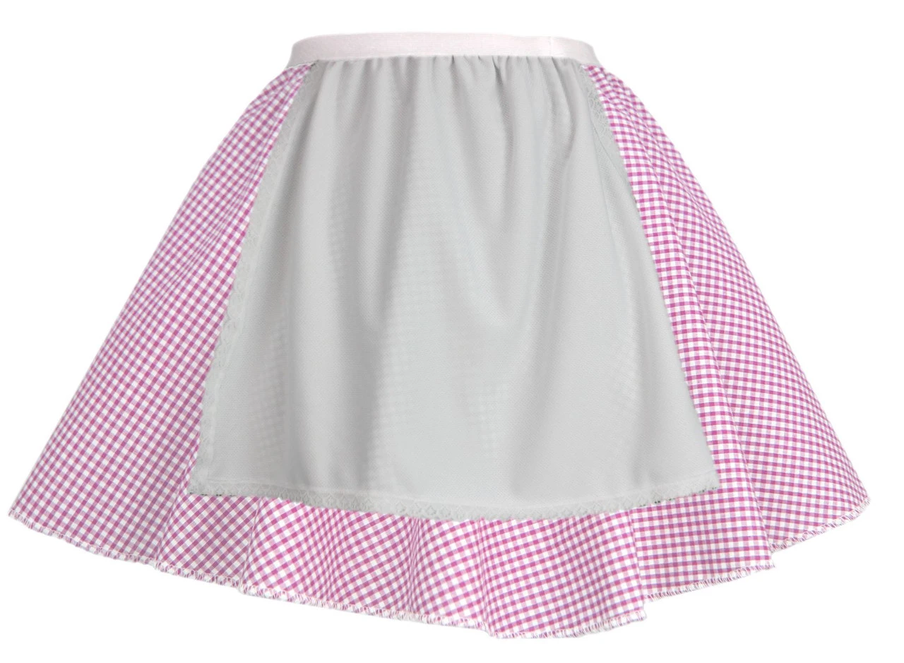 Girls Age 8-12 Years Gingham Skater Skirt With Attached Apron
