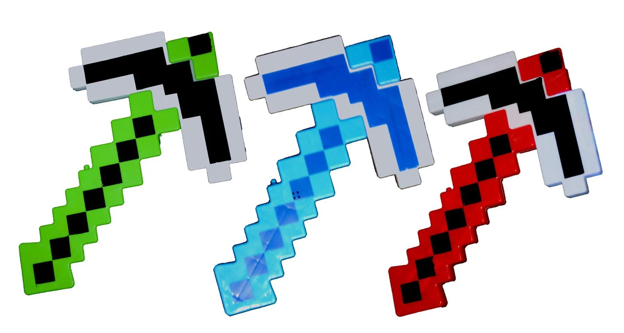 This Pickaxe is from the cyber world, is best used for computer games Geeks and Wiz kids. Grab your Ruby, Emerald or Diamond pickaxes and go explore deep cave systems, mountains or dungeons in search for all those precious Ores & Gems just waiting to be uncovered!