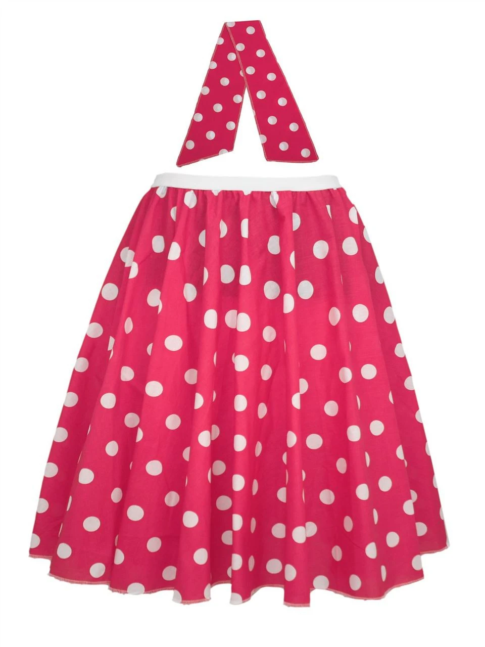 The Dragons Den Fancy Dress are Proud to Introduce the 22 Inch Long Rock & Roll Skirt in Cerise Pink & White Polka Dot. Perfect for Grease Fancy Dress, 1950’s Rock & Roll Parties, Rockerbilly Hen Parties and Loads More! This Set Includes 22″ Polka Dot Skirt & Matching Necktie (Some Girls Prefer to wear this as a 50s headband). Made from 100% PolyCotton & Available in Standard [8-14UK] & PlusSize [16-22UK].