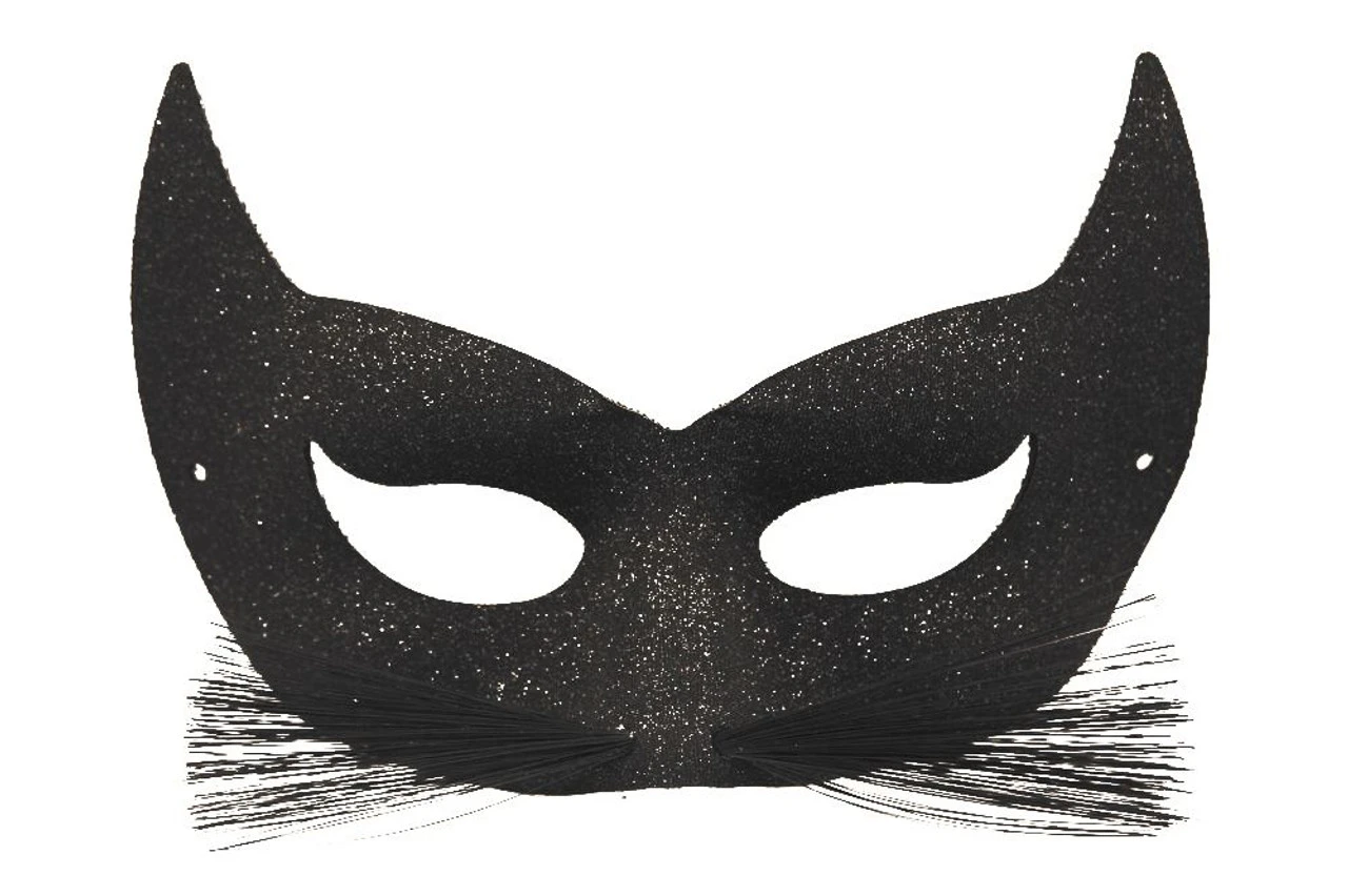 Ladies Black Glitter Cat Mask With Whiskers Catwomen Eye Mask