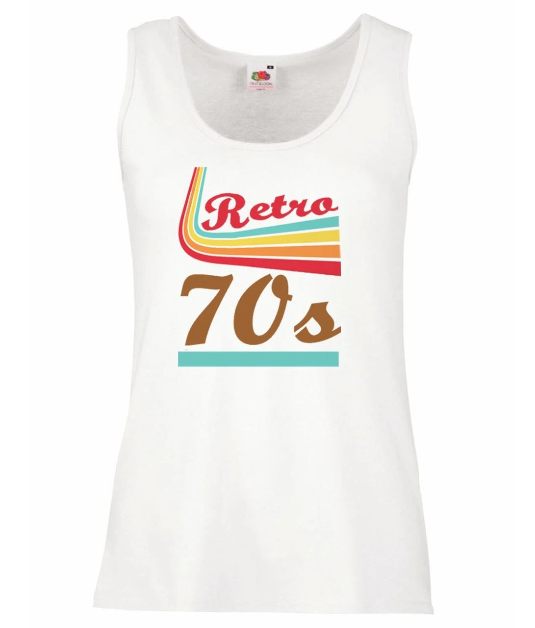 Did you love the 70/80s time period? A time of Fashion, Hippies, Music and most importantly…. Dance. Well why not prove it with our Retro 70’s multi-coloured custom printed Sweatshirt. This White Ladies Vest top is made from 100% Cotton, Fruit of the Loom branded and UK made. Available now in sizes XS/S/M/L/XL – Please note that these are TIGHT FIT