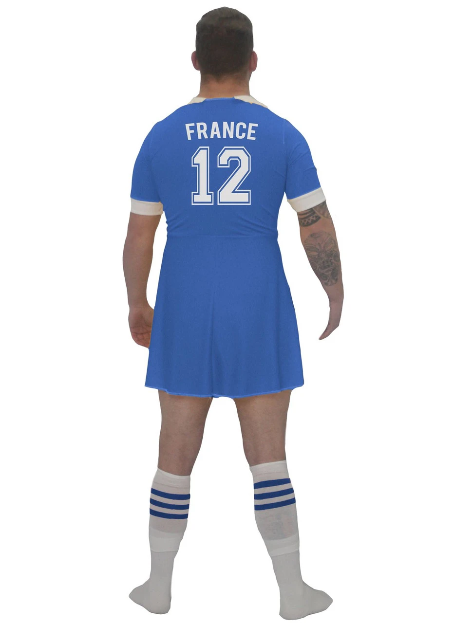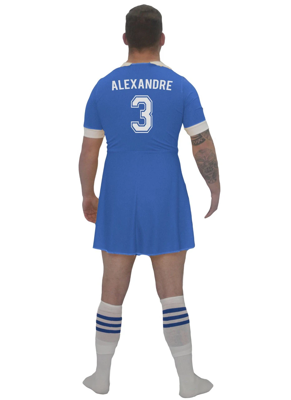 Here we have the Adults CUSTOM PRINTED – Blue Rugby Dress, Designed for men in Dresses but Great for Women Too! Ideal for Rugby Games, Stag Parties, Lads Holidays, World Cup Games , Comedy Charity Games and Loads more Rugby themed Events and Nights Out!
