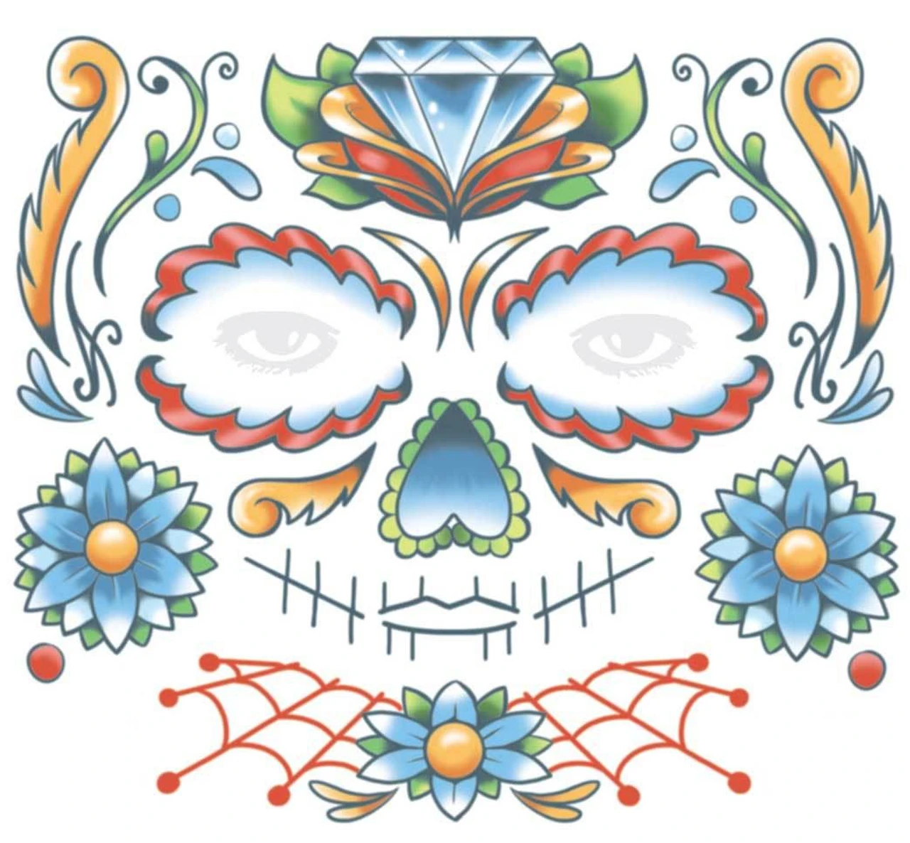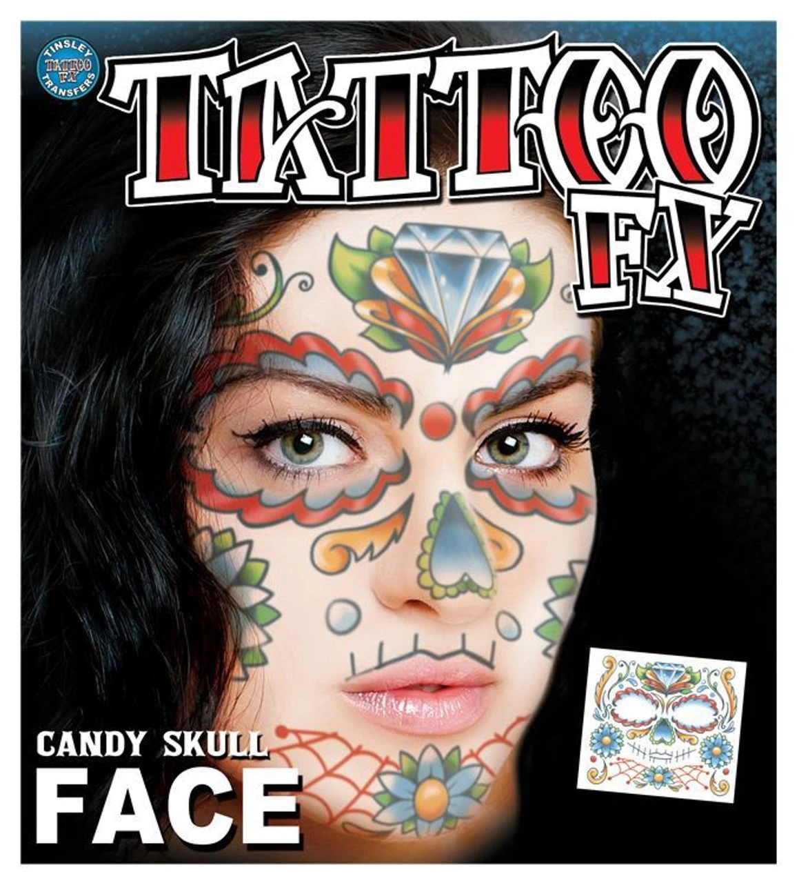 Tinsley Transfer Face Tattoo FX ‘ Candy Skull ‘ Skin Art Hollywood Special Effects